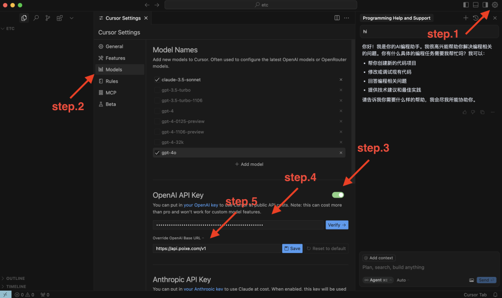 • 2. 如何在 Cursor 中接入 PoixeAI API