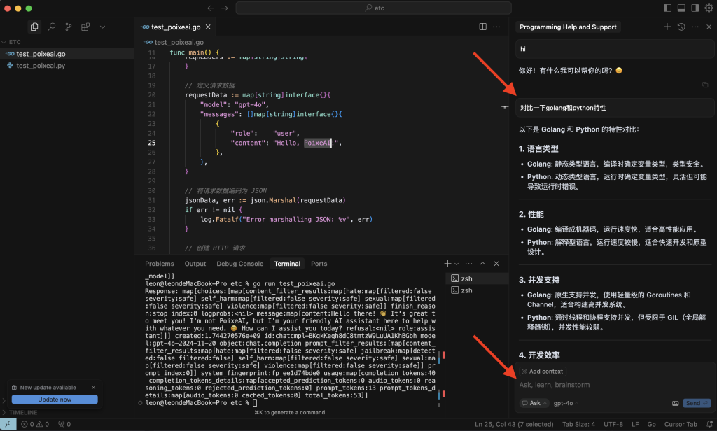 通过将 PoixeAI 的强大 AI 模型接口与 Cursor 编辑器相结合,开发者可以在代码编辑和开发过程中获得显著的效率提升。​这种集成不仅实现了智能代码补全和自然语言与代码的转换,还为开发者提供了更为智能化的编程体验。​通过本文的介绍,您应能掌握如何在 Cursor 中配置并使用 PoixeAI API,从而在实际开发中充分发挥其优势。