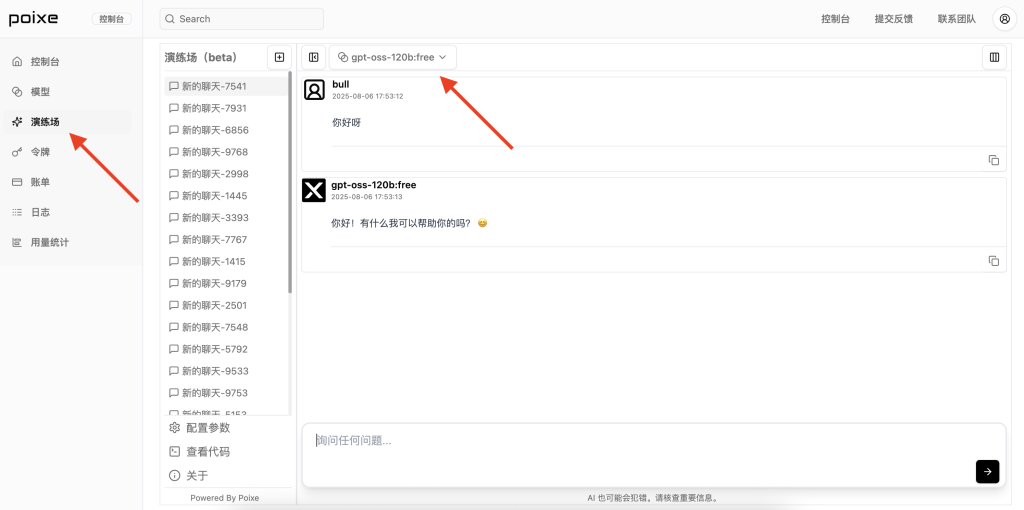 3. Poixe AI 提供 GPT-OSS 系列模型的免费 API